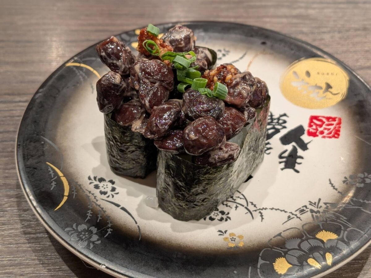 「大粒ブラックダイヤ」、軍艦の上に載っているのが、下仁田納豆の『黒豆納豆』です!